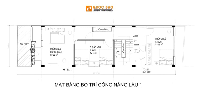 - Tầng 1: 3 phòng ngủ, 1 NVS.