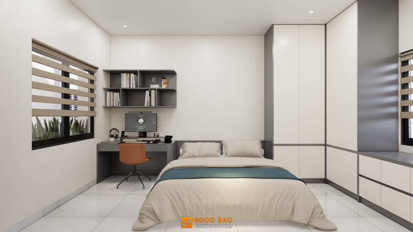 - Phòng ngủ con trai: Thiết kế hiện đại, tối ưu không gian học tập và nghỉ ngơi.