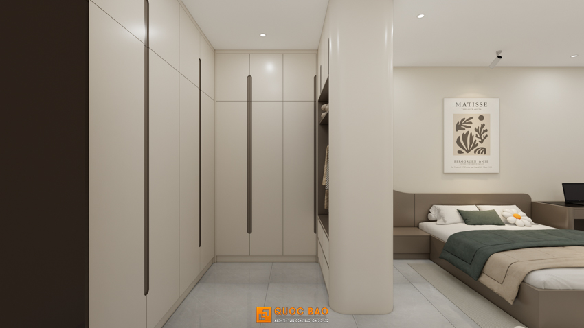 - Phòng Master: “Lãnh địa” của gia chủ với diện tích rộng, có khu thay đồ và bàn trang điểm tinh tế.